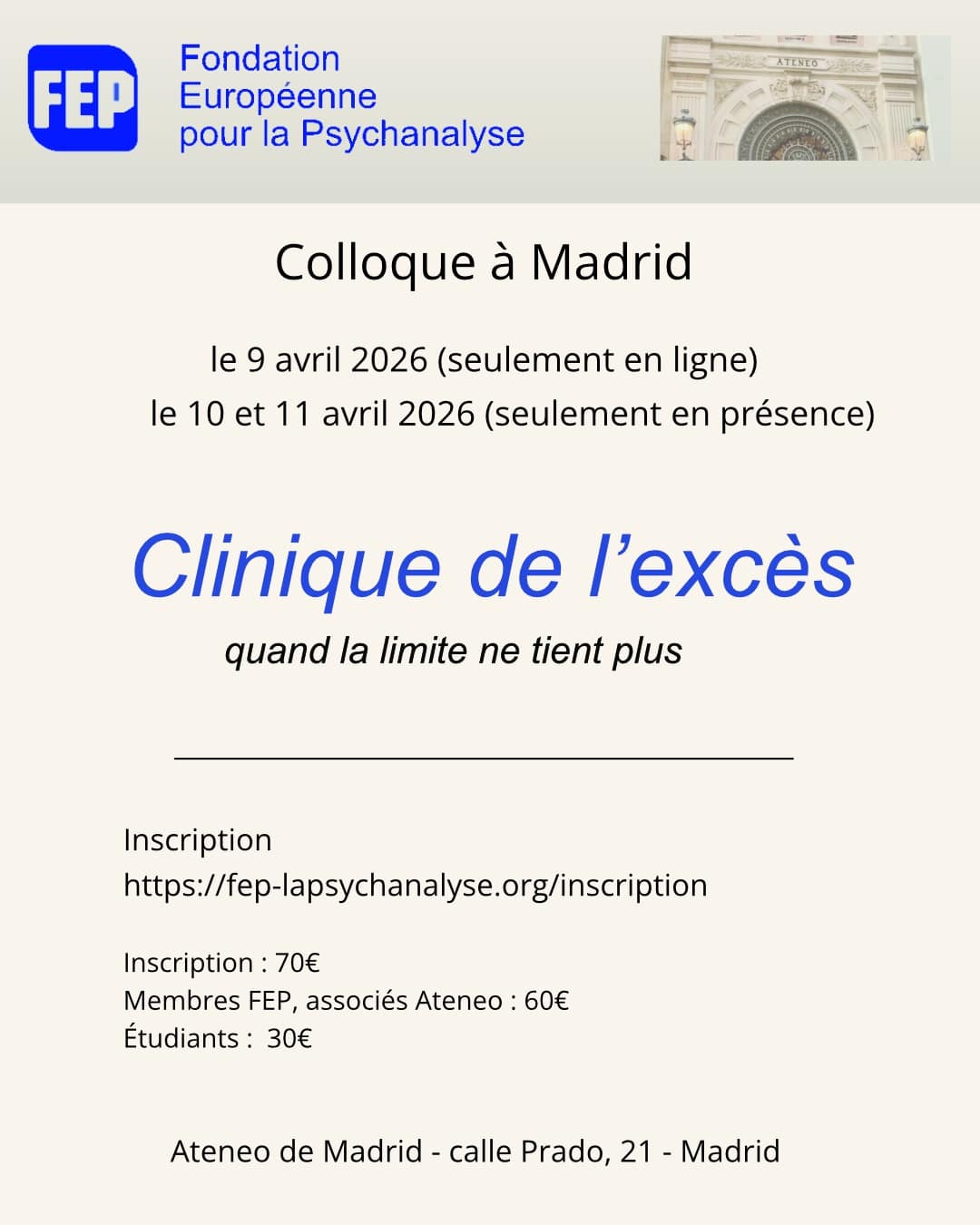 Programa - ProgrammeLire en françaisColoquio de la Fondation Européenne pour la Psychanalyse à Barcelone "Las paradojas de la transmisión en psicoanálisis" Barcelona del 13 al 15 de junio de 2025 Lugar: Hotel HCC Montblanc. Via Laietana, 61. 08003 ...